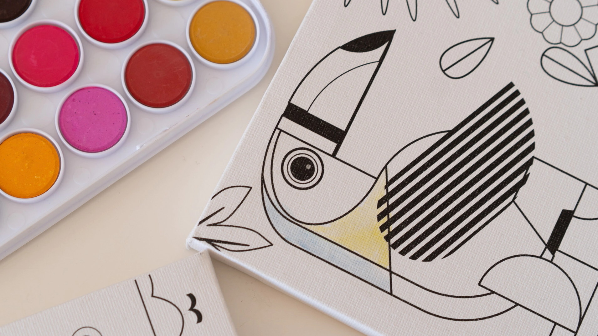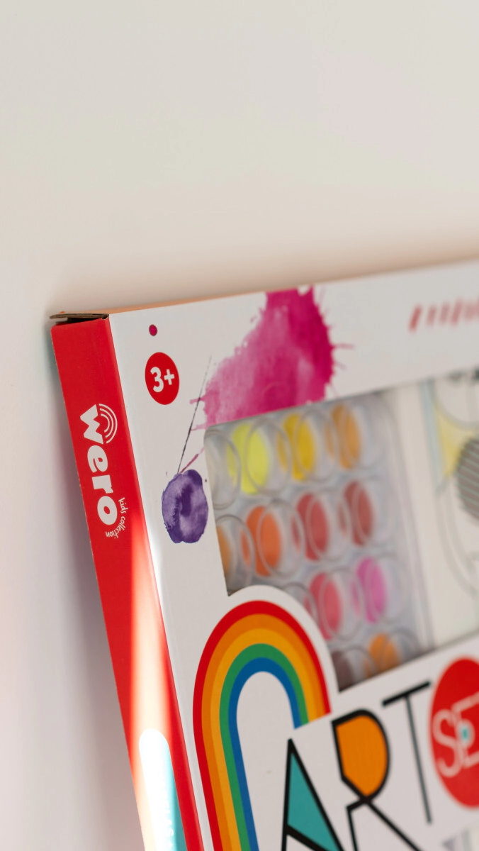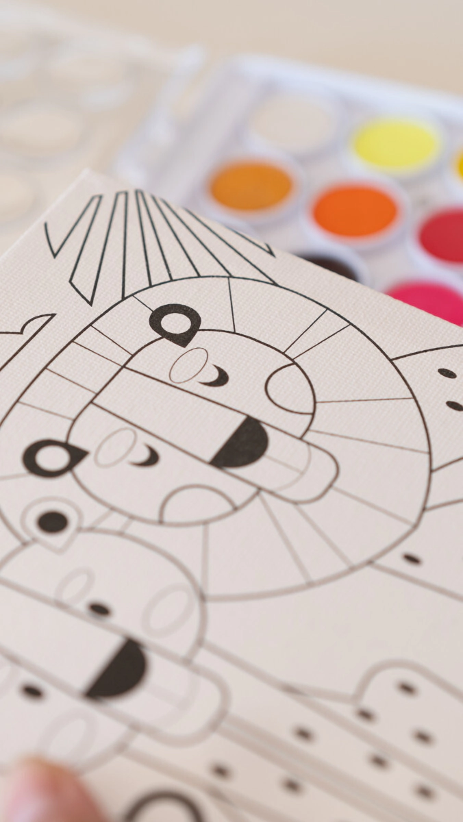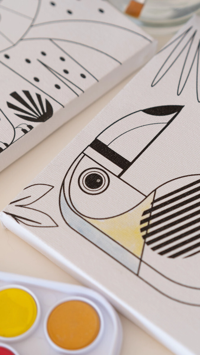Incluye 2 bastidores para pintar con dibujos preimpresos, 36 acuarelas lavables y 1 pincel.