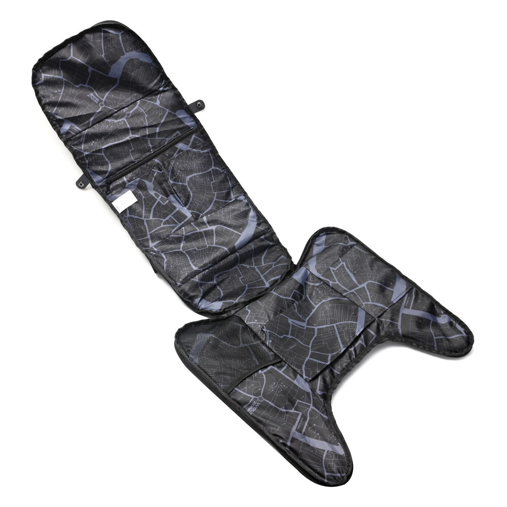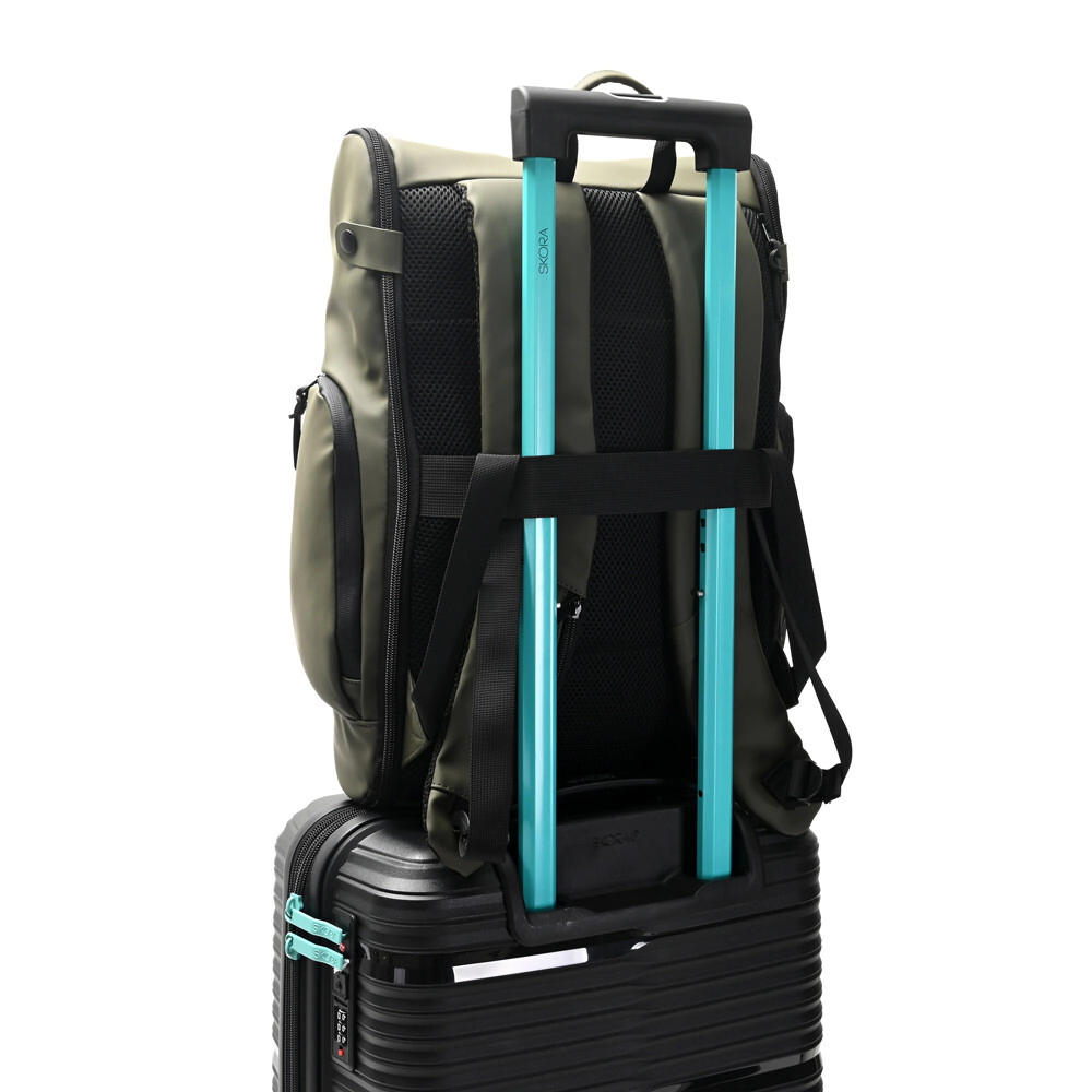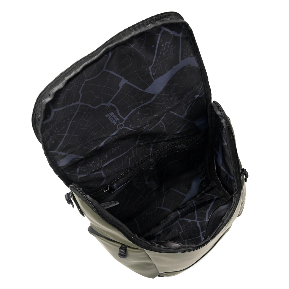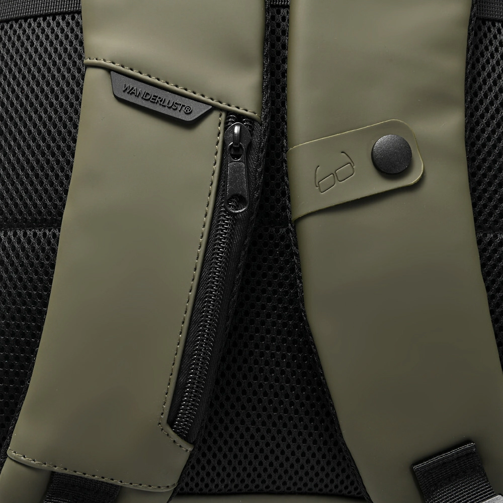 con cierres waterproof y bolsillos internos.