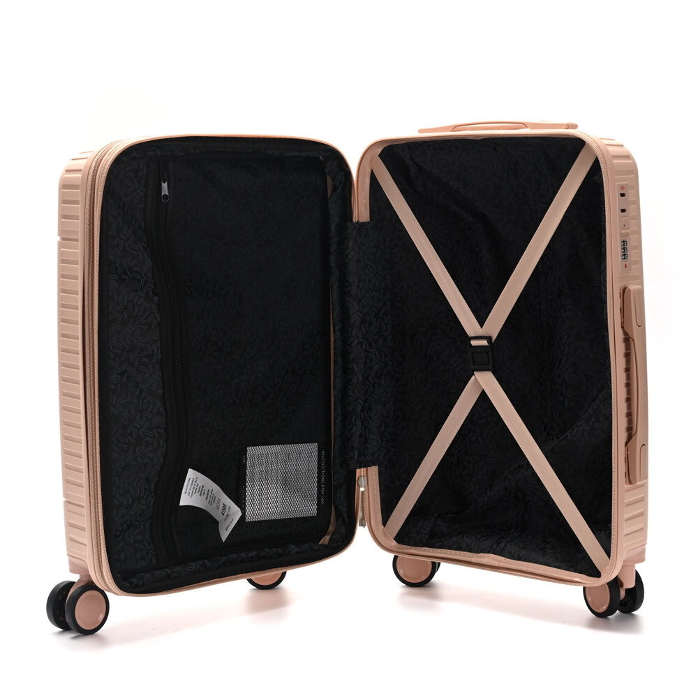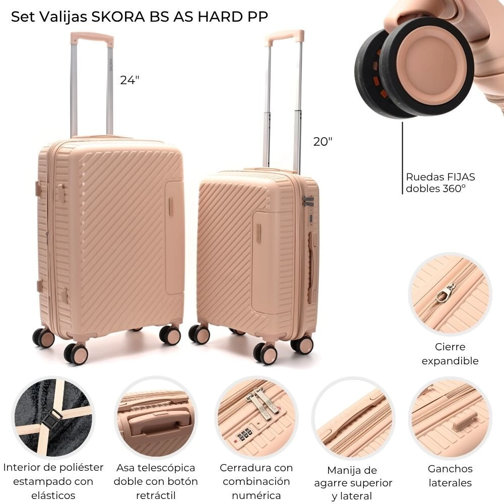 Doble rueda fija, expandible y cerradura de combinación numerica.